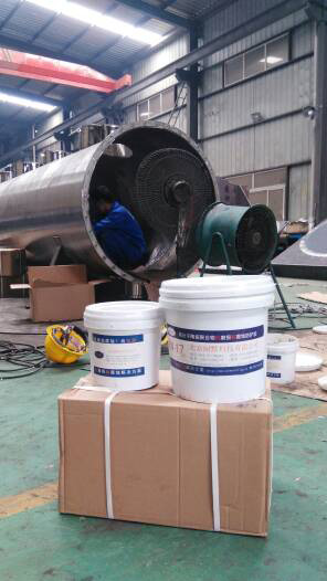 圖(2)聚合物高分子陶瓷顆粒耐磨涂層施工現(xiàn)場(chǎng)